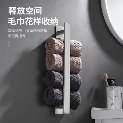 不锈钢毛巾架 家用黑色浴室收纳毛巾杆浴巾置物架免打孔毛巾架