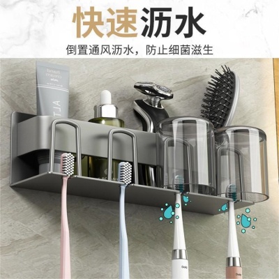 枪灰牙刷置物架免打孔电动牙刷架子卫生间牙杯收纳壁挂式漱口杯架
