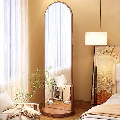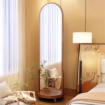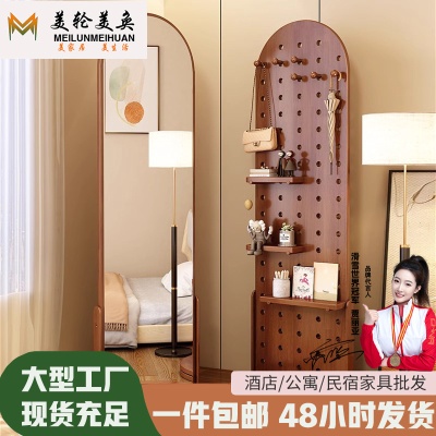 简约实木置物架家用移动穿衣镜可旋转洞洞板收纳架收纳一体带镜子