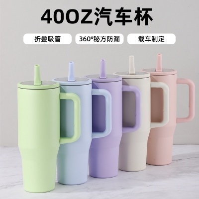 跨境热品40oz双层冰霸杯防漏可折叠吸管盖便携直饮口汽车杯