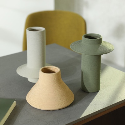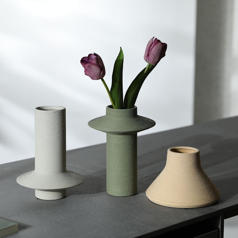 侘寂风拉丝陶瓷花瓶摆件 创意现代客厅干花插花ins风软装饰品批发
