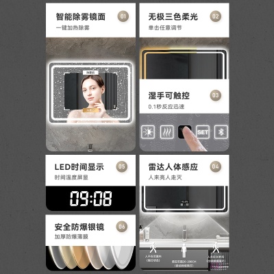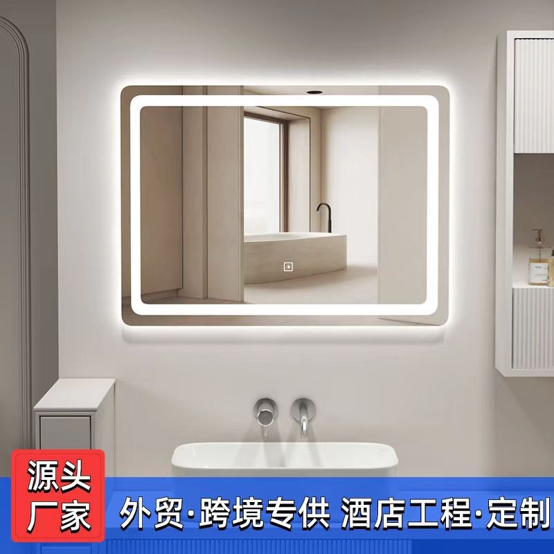 跨境外贸浴室镜子智能LED带灯方形卫生间洗手间发光防雾化妆挂墙