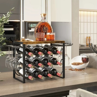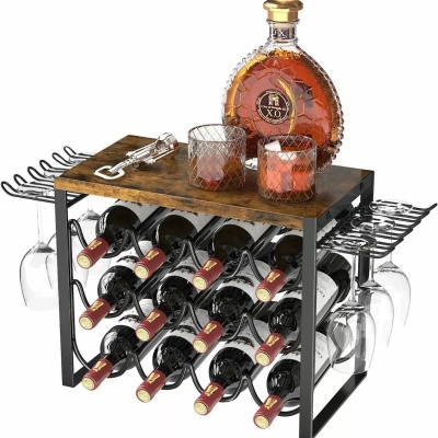 欧式铁艺红酒架 酒吧家居台面摆件 可拆卸组装红酒收纳酒杯收纳架