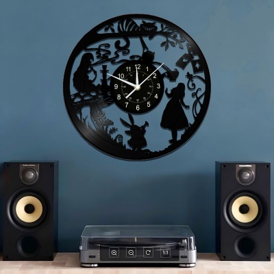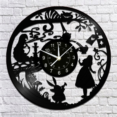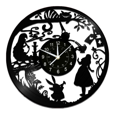 爱丽丝黑胶唱片挂钟,跨境时钟复古静音壁挂式日历原创客厅装饰