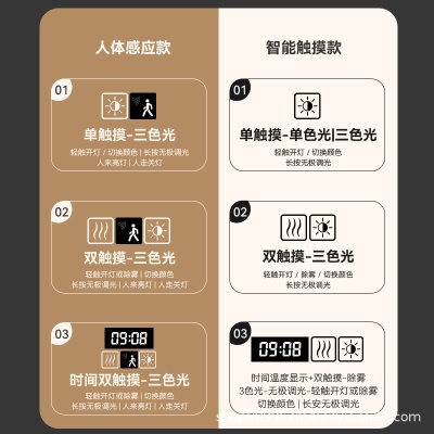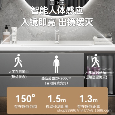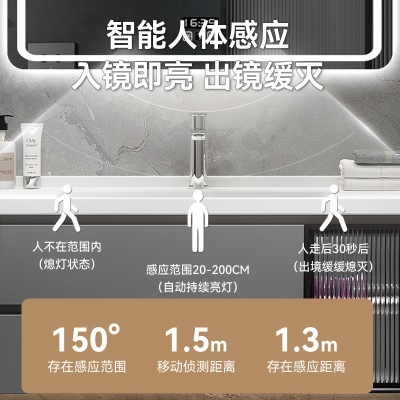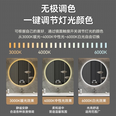 跨境外贸酒店圆形浴室镜智能带灯led卫生间防雾发光化妆感应壁挂