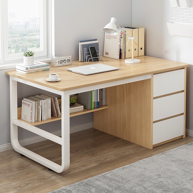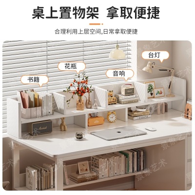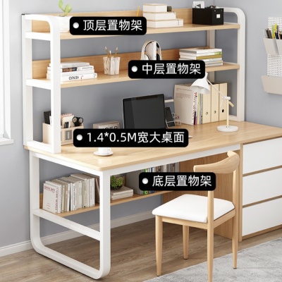 书桌书架一体家用卧室学生学习写字台书房简约台式电脑办公桌子