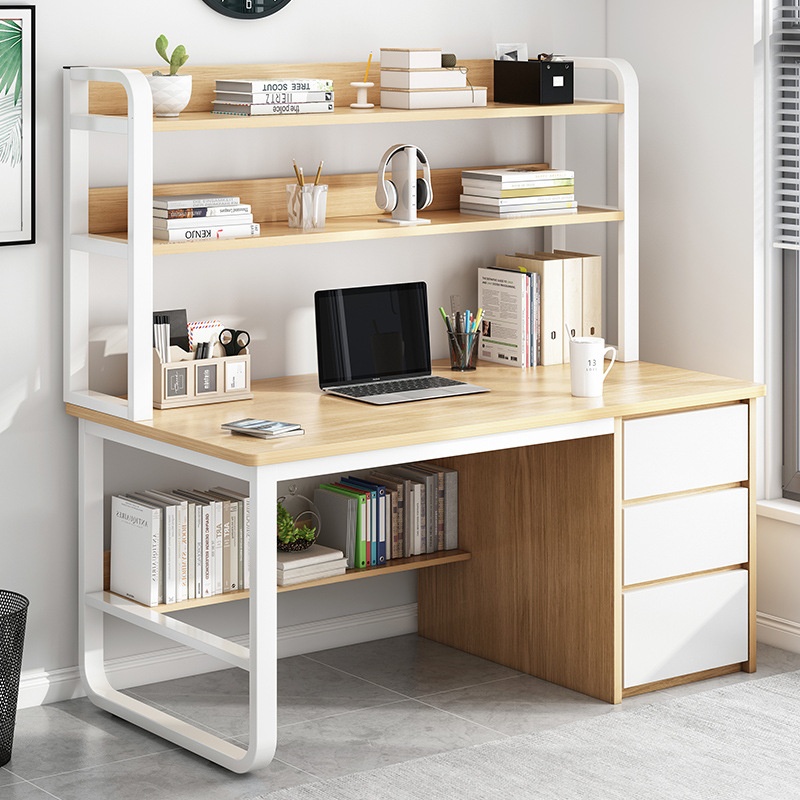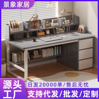 电脑桌家用现代简约书架一体书桌学生卧室桌子出租屋多功能办公桌