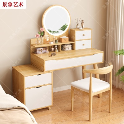 梳妆台小户型化妆镜收纳一体式多功能经济型卧室床边收纳化妆桌子
