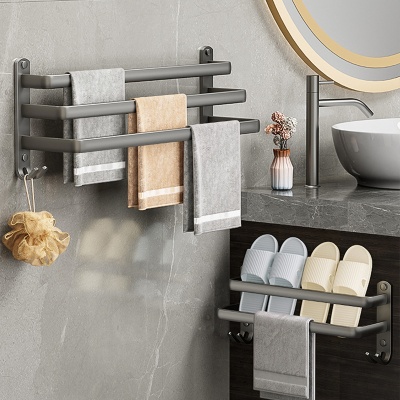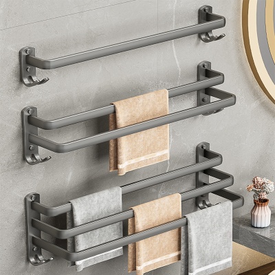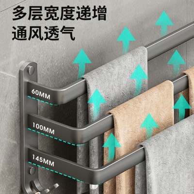 太空铝免打孔毛巾架毛巾杆单杆卫生间多层浴巾挂杆浴室挂架置物架