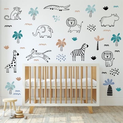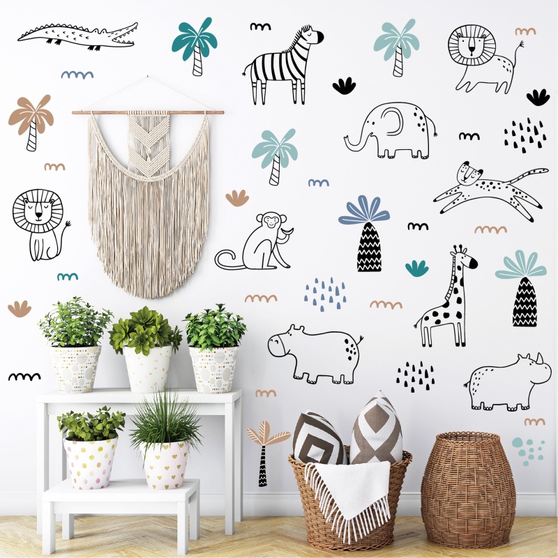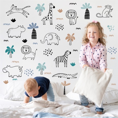 跨境线条动物墙贴丛林幼儿园儿童房客厅装饰PVC自粘创意儿童墙贴