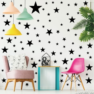 跨境墙贴自粘黑色简约混合尺寸家居装饰卧室橱窗儿童房星星墙贴