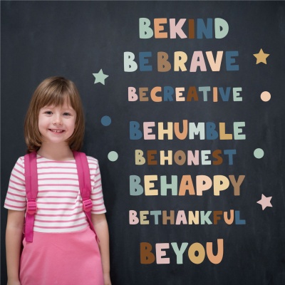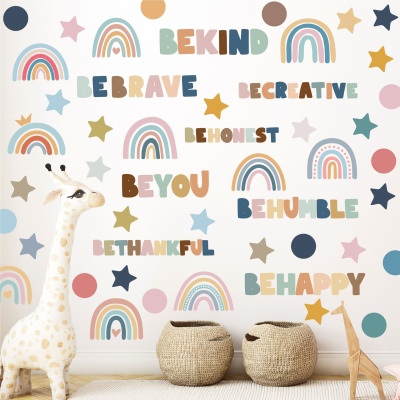 跨境卡通墙贴波西米亚彩虹英文装饰墙壁家居幼儿园儿童房自粘墙贴