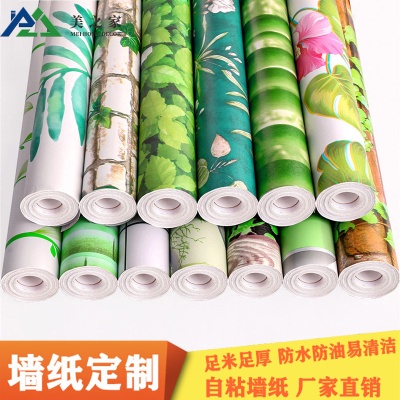 墙纸ins风自粘植物花卉墙纸自粘即时贴墙贴现货批发防潮卧室装修