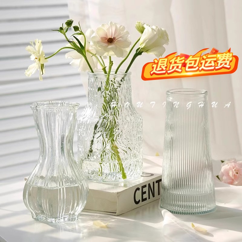 北欧轻奢玻璃花瓶透明客厅高级感插花水养鲜花装饰精致花器摆件
