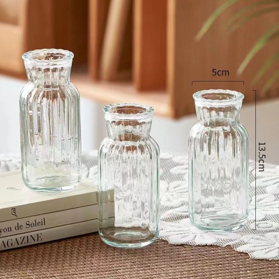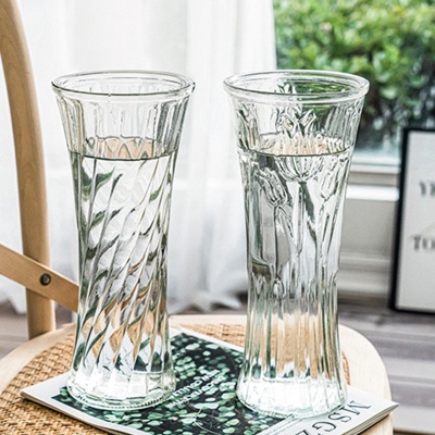 代发包邮透明锥桶花瓶竖条纹ins风鲜花水养插花瓶高级感玻璃摆件