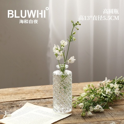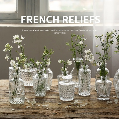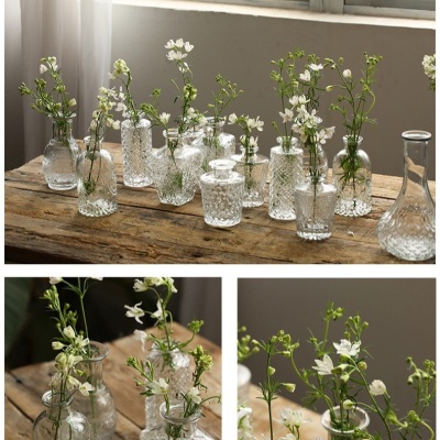 复古轻奢迷你玻璃花瓶透明高级感客厅ins风家居摆件插花小花瓶