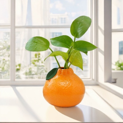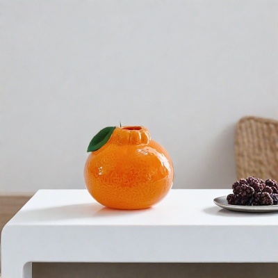 橘子陶瓷小花瓶摆件客厅插花水培植物鲜花绿萝桌面摆设装饰品