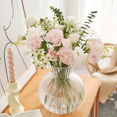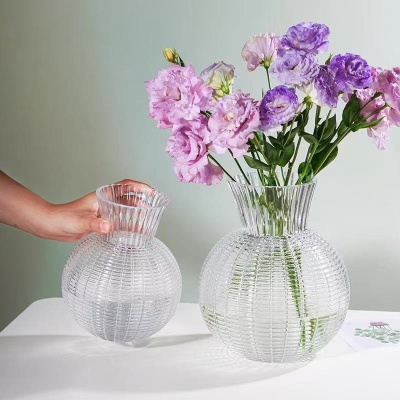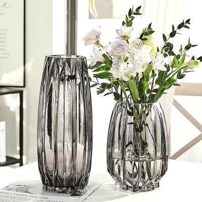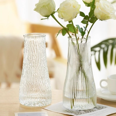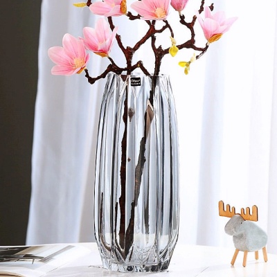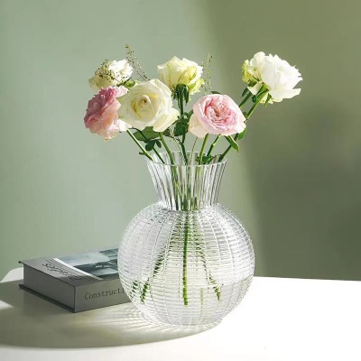北欧玻璃花瓶透明 竖纹 创意客厅插花玫瑰百合鲜花家用装饰摆件