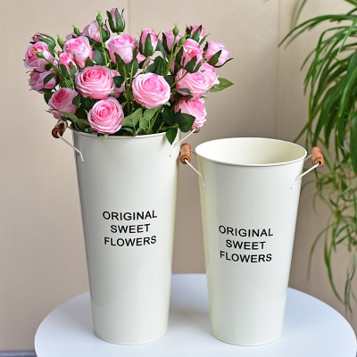 铁艺醒花桶花店家用鲜花插花干花桶北欧风装饰铁皮桶大号落地花筒