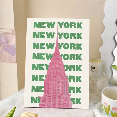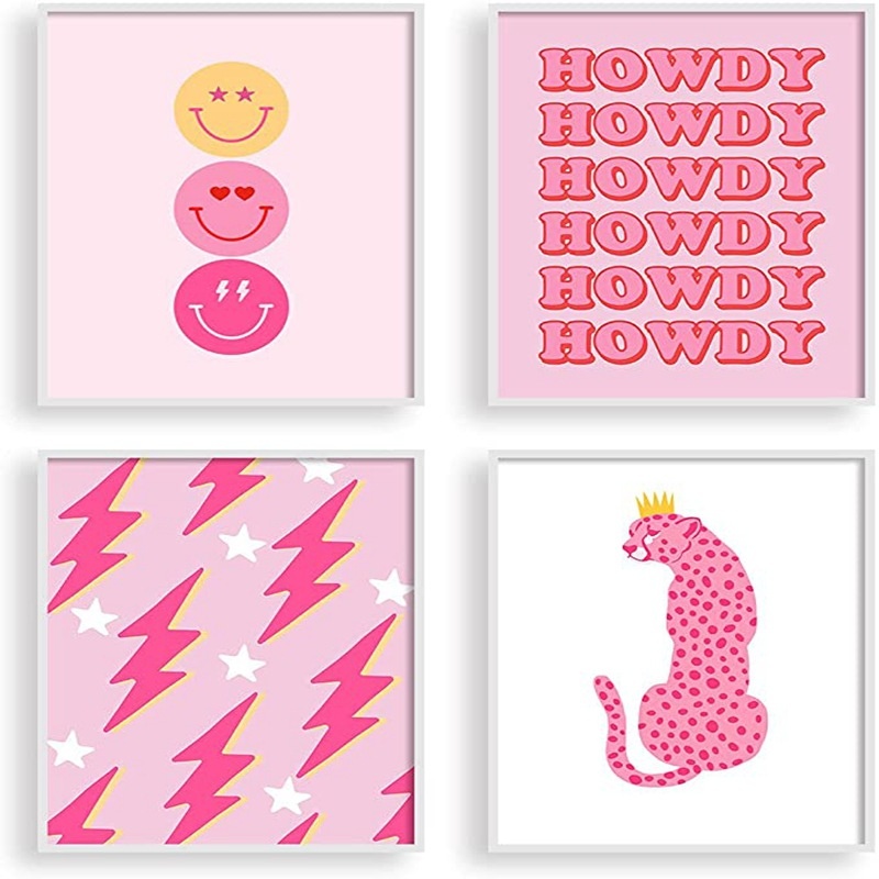 粉色英文笑脸粉红豹无框帆布画 跨境热卖沙发背景墙装饰海报挂画