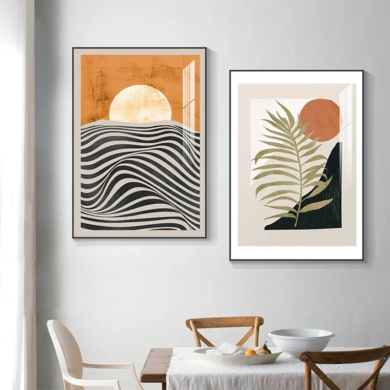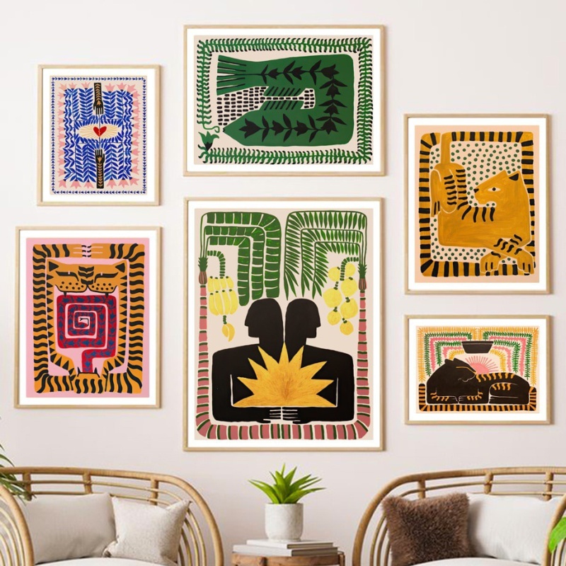 北欧抽象艺术餐厅客厅装饰画复古线条老虎墙壁画小众客厅卧室挂画