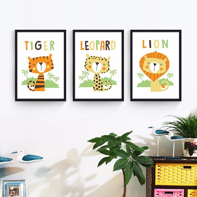 外贸新款北欧现代儿童插画可爱卡通动物狮子儿童书房卧室装饰画