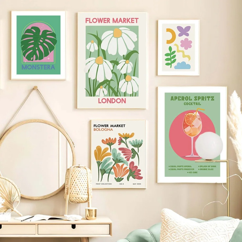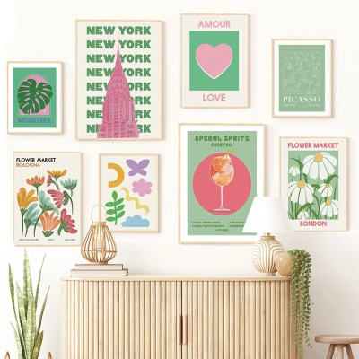 北欧复古彩色鸡尾酒海报装饰画挂画帆布画壁画高清喷绘装饰画画芯