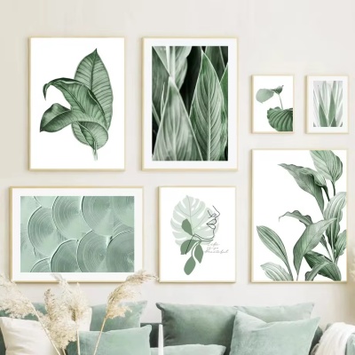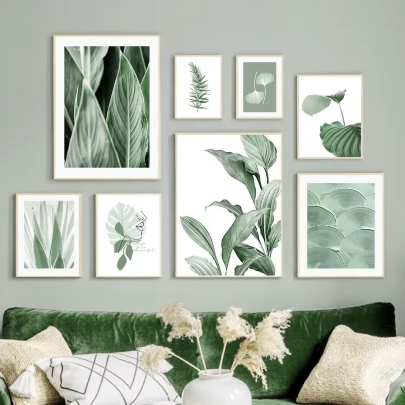 现代北欧绿色抽象几何植物绿色客厅卧室装饰挂画无框画芯海报