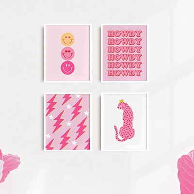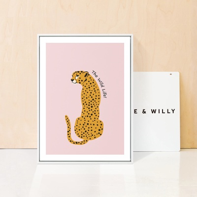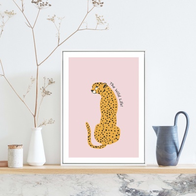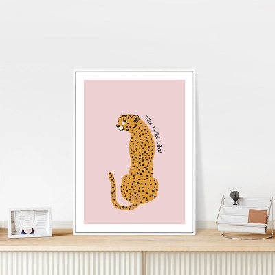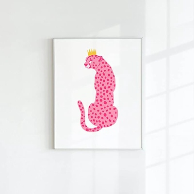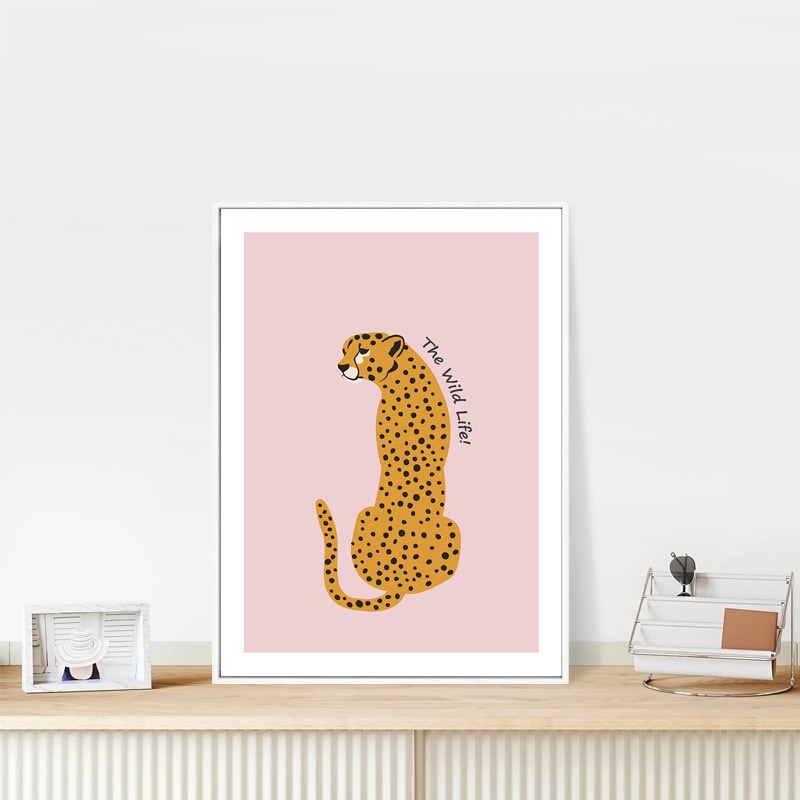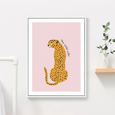 北欧儿童房装饰公主房女孩少女心卧室墙画可爱卡通动物豹子粉色画