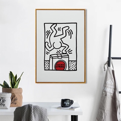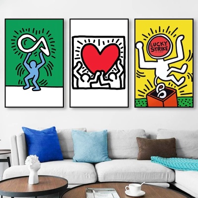 基思艺术展抽象海报哈林波普艺术版画幸运贴纸心形装饰画画廊装饰
