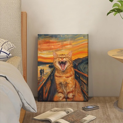 盈浩无框小红书卡通小狗猫油画效果喷绘卡通宠物卧室装饰画批发
