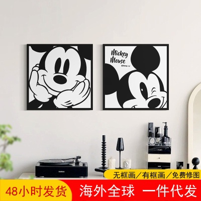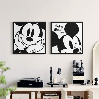 黑白米奇装饰画无框画油画布相框油画高级感客厅挂画k画廊清库存