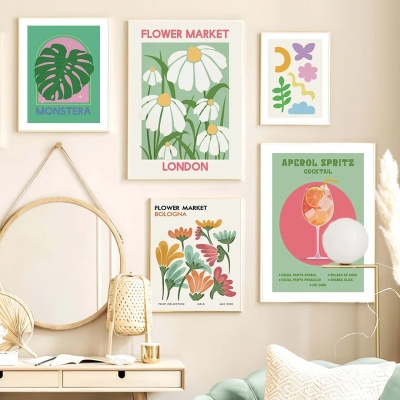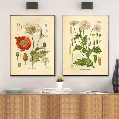 跨境代发野外植物海报植物花卉书房客厅挂画牡丹画审美房间装饰油