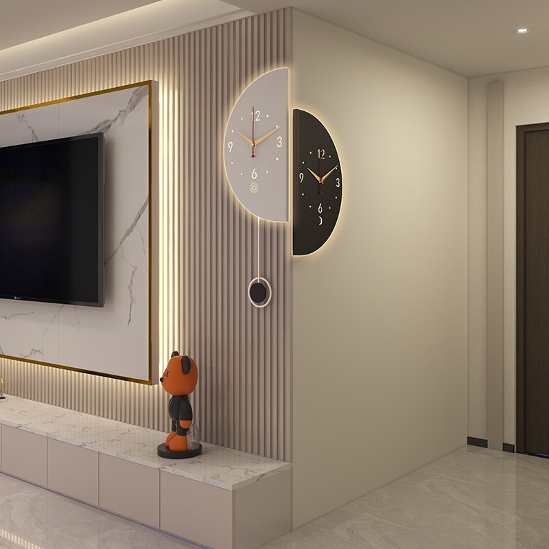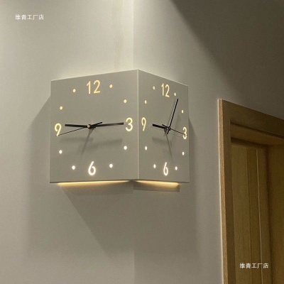 2024新款客厅双面转角挂钟家用拐角阳角时钟挂表创意轻奢壁灯钟表