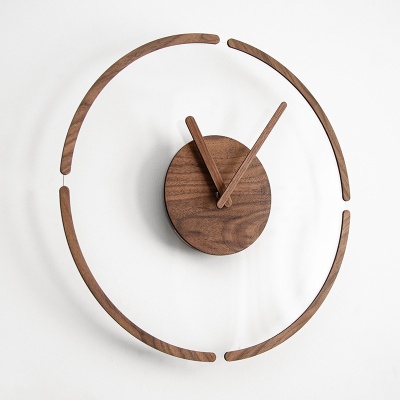 北欧实木透明挂钟现代简约创意时尚钟表客厅卧室家用时钟个性挂表