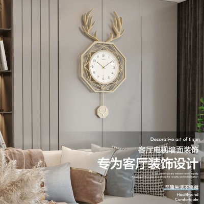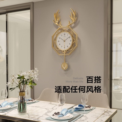 北欧鹿头钟表挂钟客厅创意时尚简约时钟挂墙石英钟网红挂表家用