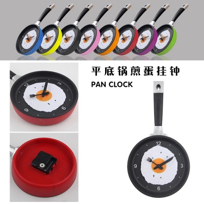 欧式创意客厅厨房装饰挂钟ABS塑料煎蛋锅钟表简约石英时钟挂表