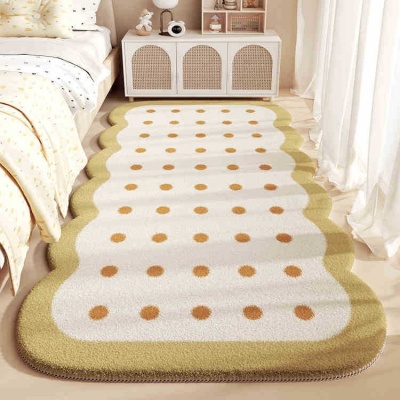 新款卧室绿色床边地毯少女ins奶油风轻奢高级感不规则长条地垫