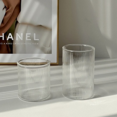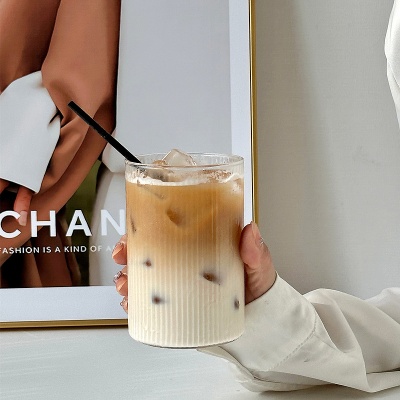 高硼硅耐热玻璃杯家用竖纹牛奶杯咖啡饮料杯透明玻璃大容量单层杯