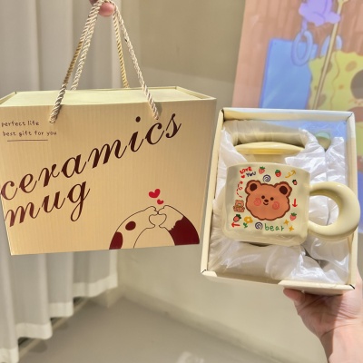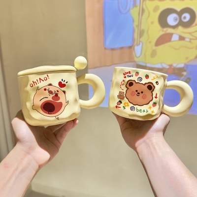 韩式奶油小熊马克杯胖把手陶瓷杯大容量简约牛奶杯男女学生情侣杯