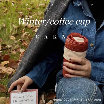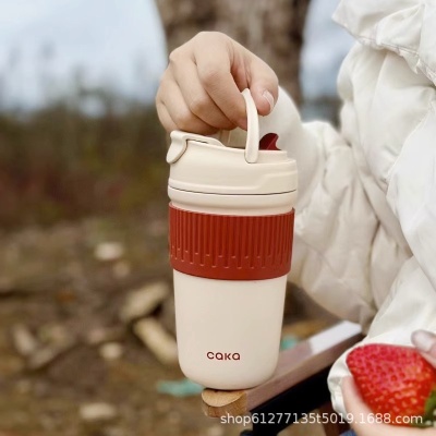 CAKA茶卡陶瓷内胆保温杯女士咖啡随行吸管杯高颜值便携不锈钢水杯