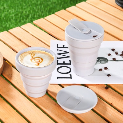 新品可折叠便携硅胶咖啡杯食品级coffee cup饮料杯漱口杯硅胶水杯