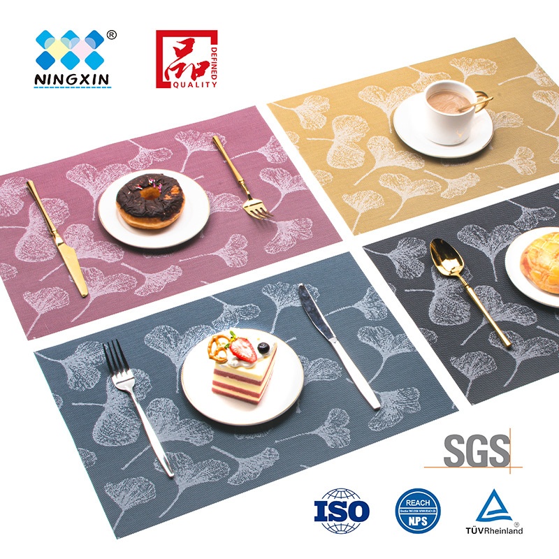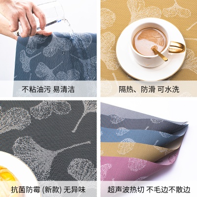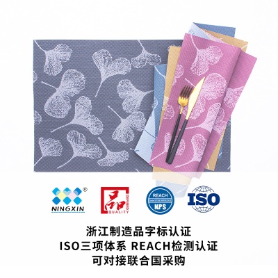 宁欣新中式银杏叶餐垫加密编织防水桌垫环保PVC隔热垫杯垫桌旗