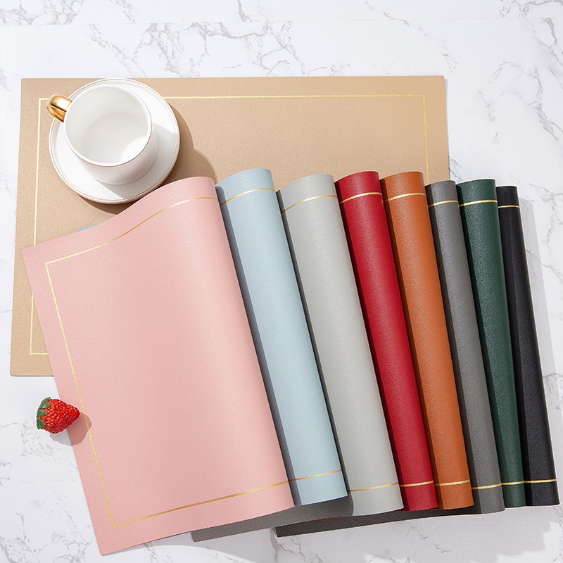 北欧风仿金边皮革餐垫简约直角家用隔热餐桌垫防烫酒店西餐垫防滑