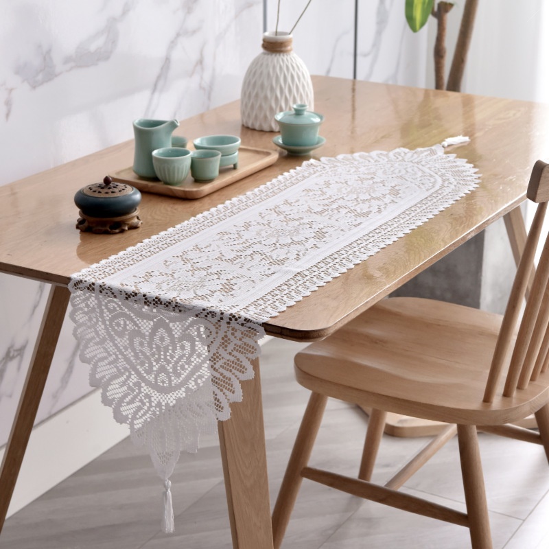 跨境欧式33*114cm镂空蕾丝桌布桌旗餐垫餐桌家用台布茶几布餐桌布