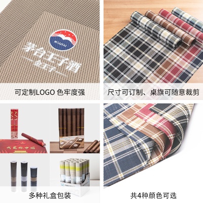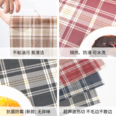 宁欣跨境英伦风格子餐垫PVC防滑隔热垫长方形桌垫杯垫桌旗套装