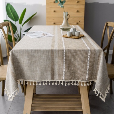日式桌布灰色流苏ins风防尘餐桌布长方形家用棉麻桌垫现货批发