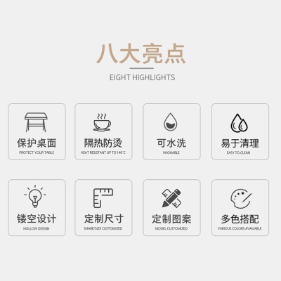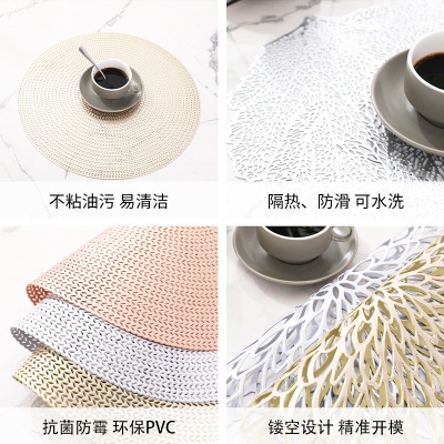 北欧轻奢镂空餐垫PVC桌垫隔热垫西餐垫烫金扇贝圆形餐垫餐厅酒店