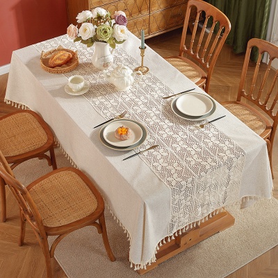 美式田园风桌布纯色轻奢蕾丝花边拼接工艺茶几台布餐桌布现货批发