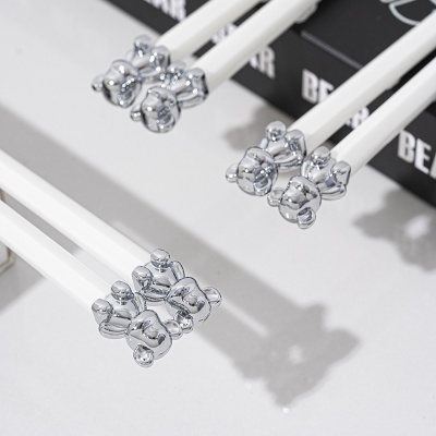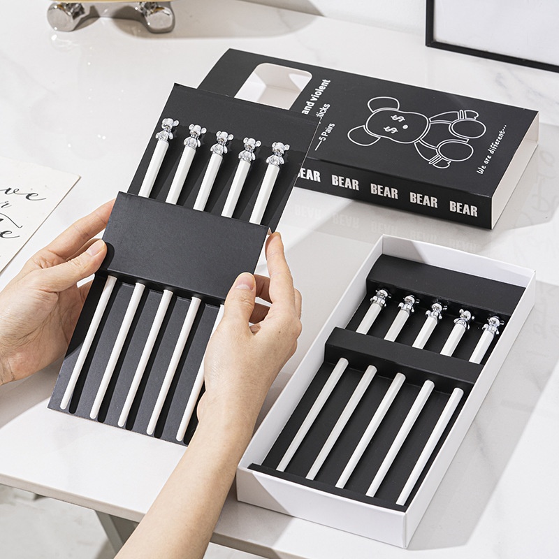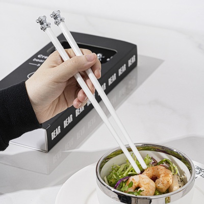 创意合金小熊陶瓷筷子易清洗白色简约五双家庭装瓷筷骨瓷筷子logo